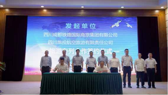 會上,四川旅投集團旗下旅投航旅公司和中鐵成都局集團旗下成鐵商旅公司簽訂了旅游專列項目合作協(xié)議,將投入各自優(yōu)質資源,共同運營從四川、貴州、重慶境內城市車站始發(fā)、開往全國各地的旅游專列,共同發(fā)揮國有資本的帶動作用,踐行社會責任。簽約結束后,大會為西南旅游專列聯(lián)盟首批35家成員單位進行了授牌。